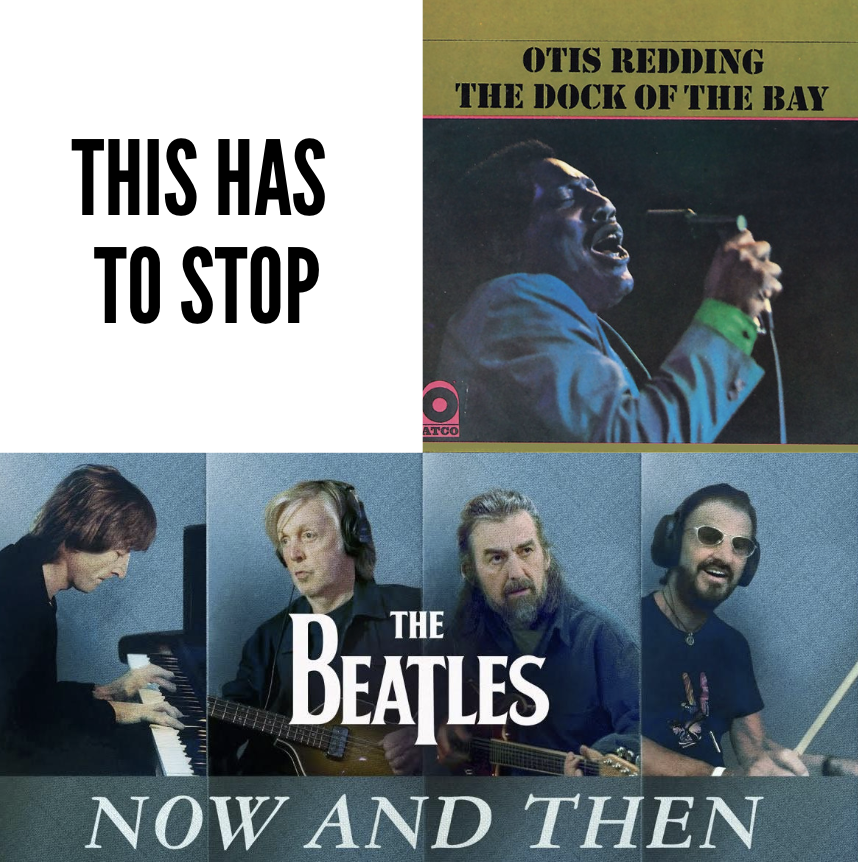 Speaking of bringing down a band’s catalogue, I would be remiss if I did not mention Now and Then, the recent “release” by The Beatles. I love the Beatles. In fact, I am hesitant to ever write down criticism of one of my favorite bands of all time. However, I feel a need to call out Now and Then. Its creation involved Yoko Ono giving Paul McCartney an old demo created by John Lennon. Ringo Starr and McCartney then turned their efforts to successfully use AI to separate the vocals from the background music, eventually building on the demo to create a finished product. Unfortunately, the result was bad. Partially because The Beatles did not create that song. Similar to Mary Shelley’s Frankenstein, this life was not meant to be and appears more like a zombified version of The Beatles’ legacy. Who knows if George Harrison and John Lennon would have approved of this? Again, while I struggled to criticize The Beatles, I believe it is crucial to understand that this was not a true Beatles production. Even with McCartney and Starr’s approval, releasing this song is not indicative of the wishes of the band and should have remained unpublished.