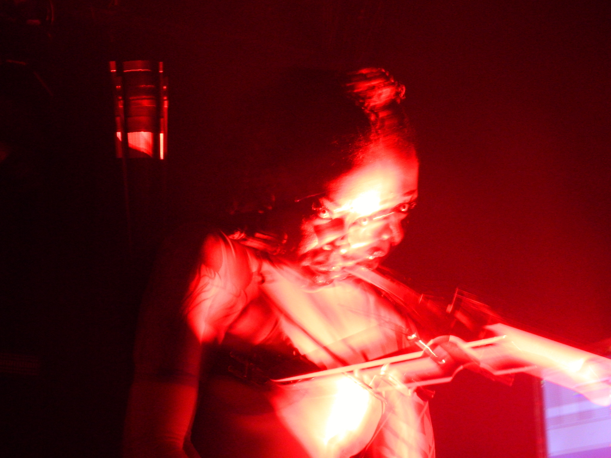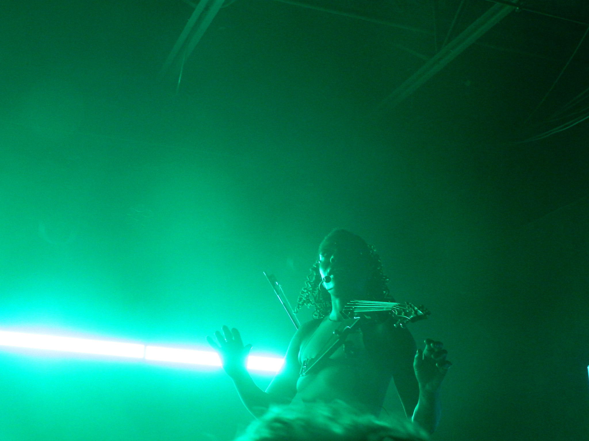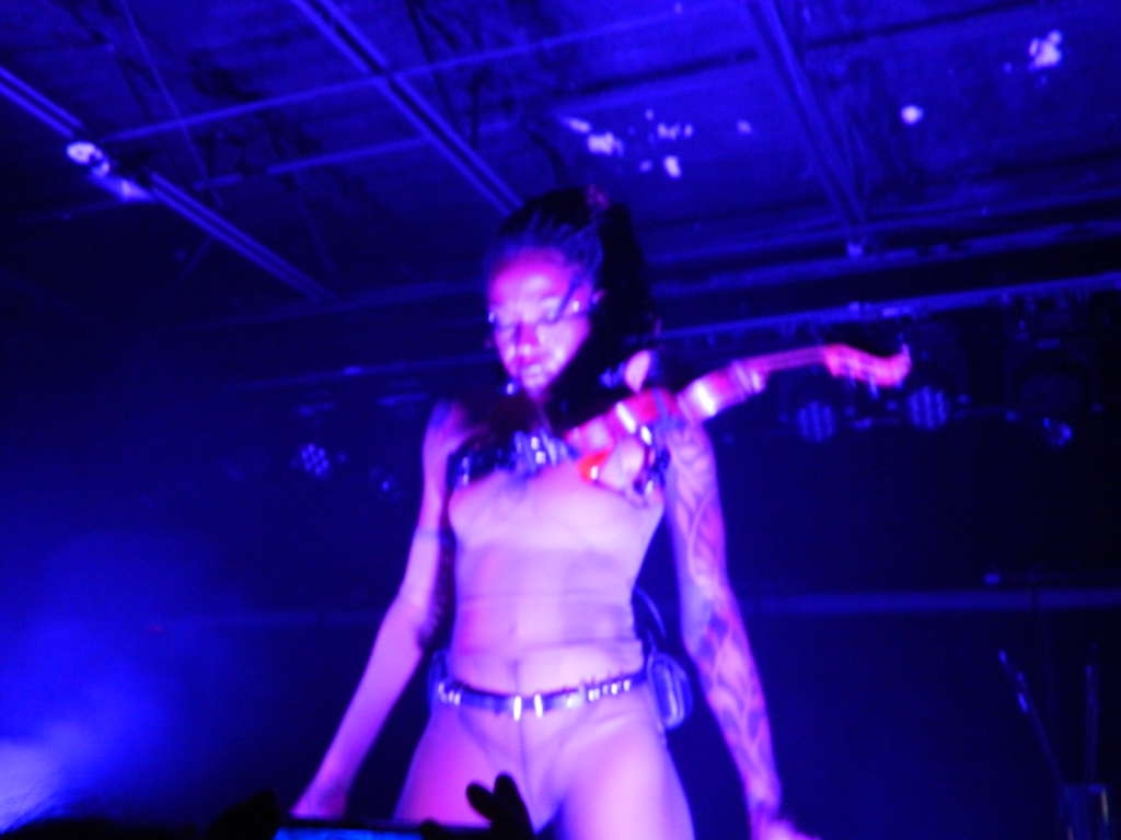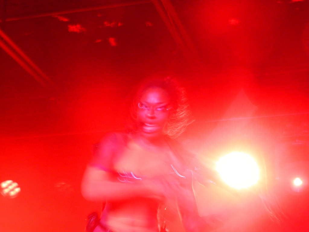 It was hard not to feel out of place in my T-shirt and jeans standing in an eclectic concert crowd consisting of many leather get-ups and metallic face mask contraptions. I felt disconnected, like I was a part plugged into the wrong slot in a machine. As the lights dimmed, these thoughts were enveloped in an onslaught of glitched-out noises as Sudan Archives entered The Basement East stage. The conglomeration of people became transfixed as she glided across stage, booting up.