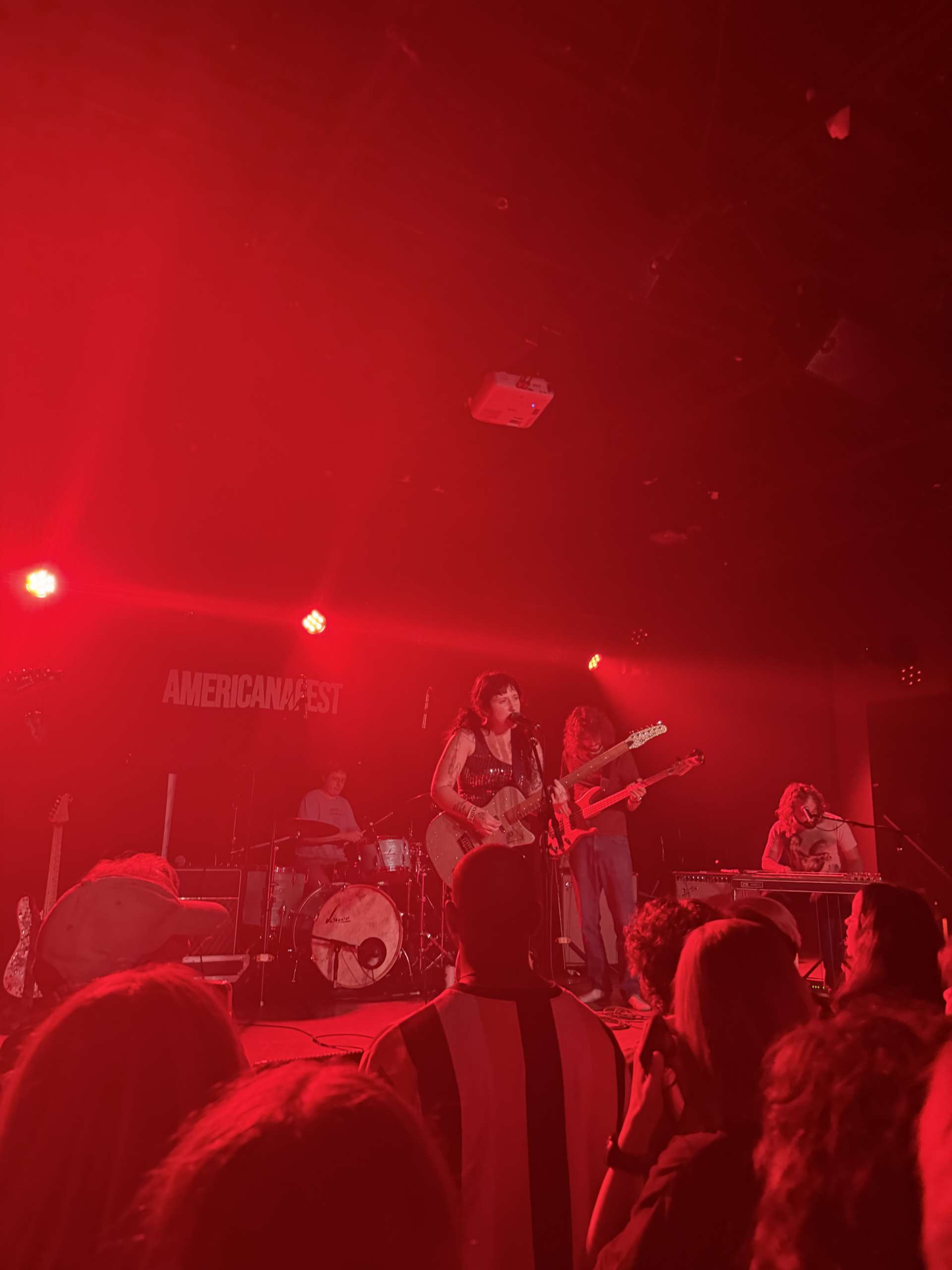 Looking at the setlist from Friday night’s show, it might seem unclear why Wednesday were chosen to play an AmericanaFest showcase. For most of the set, Karly Hartzman shrieked, moaned and murmured as if fronting a punk band; the band behind her ebbed and flowed through feedback, sheer noise, and dark, gritty pandemonium.